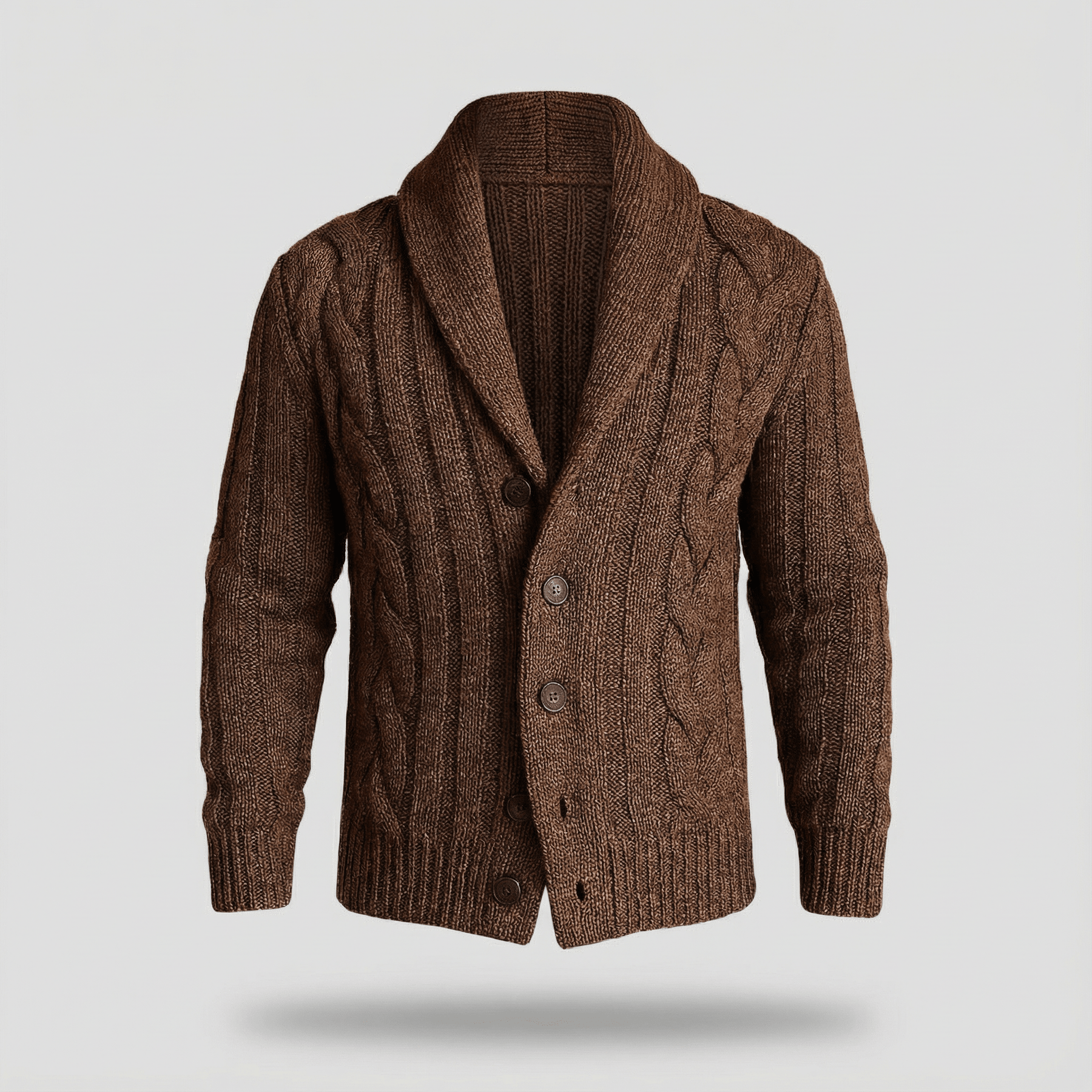 The Carson Cable Knit Shawl Cardigan Sweater offers a blend of style and comfort with its intricate cable knit design. Featuring a cozy shawl collar, this sweater is perfect for layering during cooler months. Made from high-quality materials, it ensures warmth and durability for everyday wear.